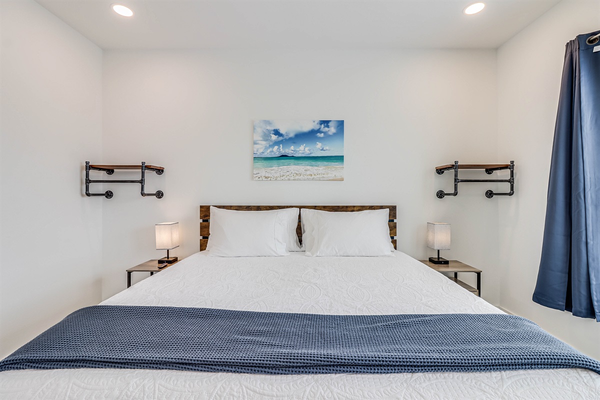 Each house has 3 King bedrooms, each with ensuite baths and a bunkroom with twin beds for 6 and a full bath in the hallway, 2 additional half baths, and an outdoor shower. (See the last few pictures for the full floor plan)