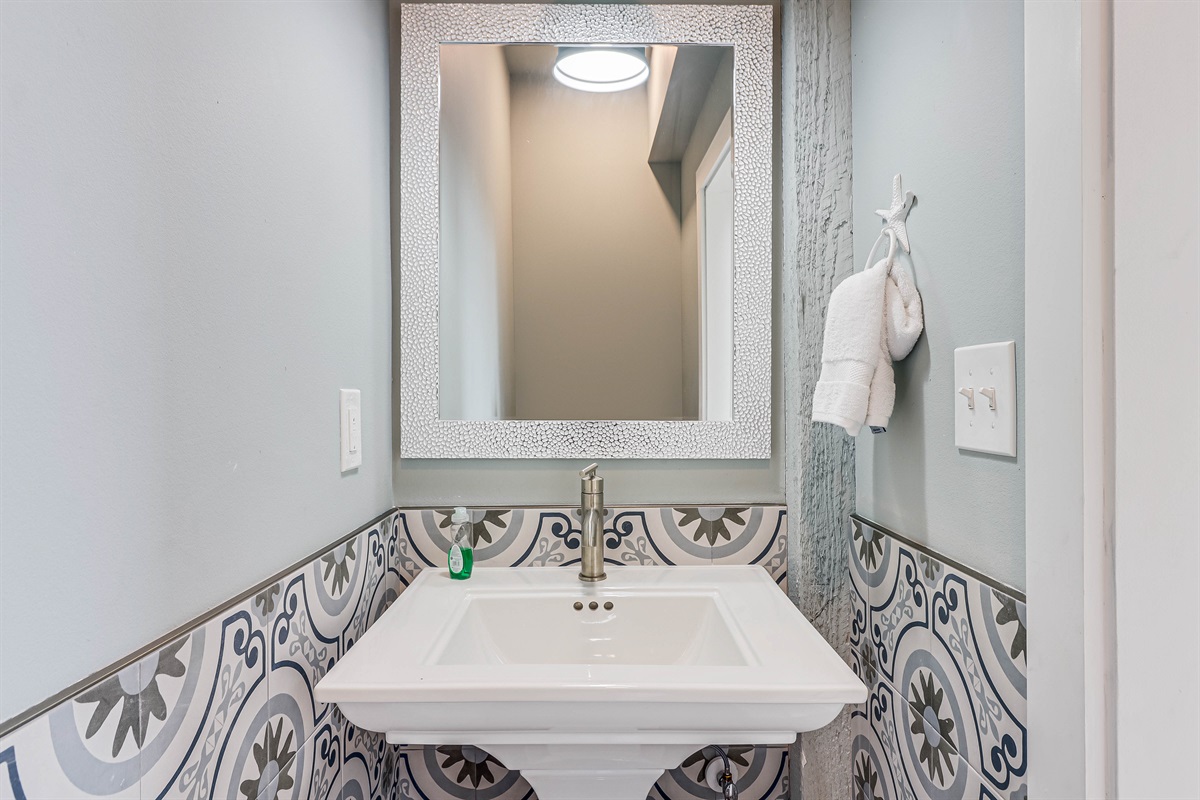3 King bedrooms, each with ensuite baths and a bunkroom with twin beds for 6 and a full bath in the hallway, 2 additional half baths, and an outdoor shower. (See the last few pictures for the full floor plan)